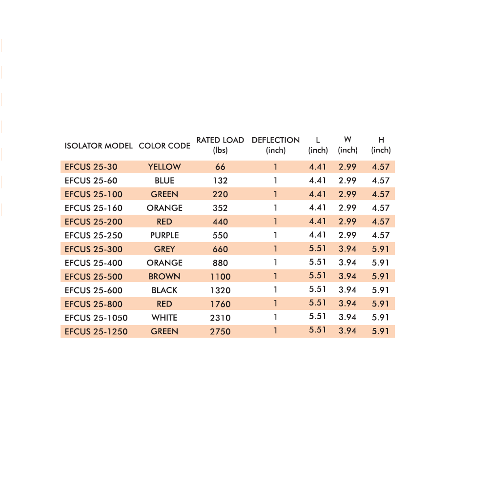 EFCUS Cup Spring isolators are recommended for use in isolating sources of noise and vibration located near critically quiet areas. They are highly effective for control of both high and low frequency vibration produced by reciprocating refrigeration compressors, pumps, packaged air- handing and air-conditioning equipments, centrifugal and axial fans, inertia bases, internal combustion engines. etc.